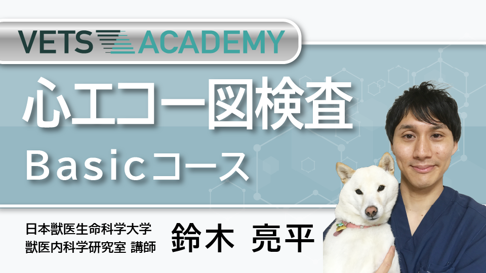 本VETS ACADEMY Basicコース「心エコー」では、最低限押さえておきたい心エコーの基本事項、心疾患スクリーニングに必要な心エコー基本断層像の描出方法と評価方法、さらには犬で多い僧帽弁閉鎖不全症、および猫の心筋症における心エコー図のポイントを網羅します。今後心エコーを診療に活かしていきたいと考える先生方にとって、実践的で、明日からの臨床現場で役立つものとなれば幸いです。