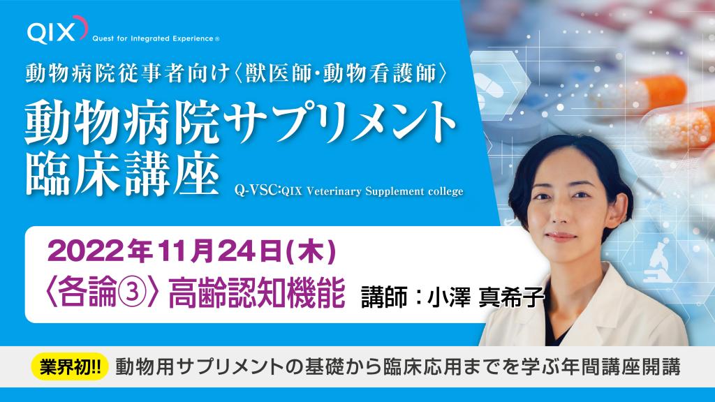 そこでQIXでは、動物用サプリメントの可能性や実際の事例などに関して、多くの獣医師、動物看護師の方々に知っていただきたいという想いから、本講座を企画いたしました。