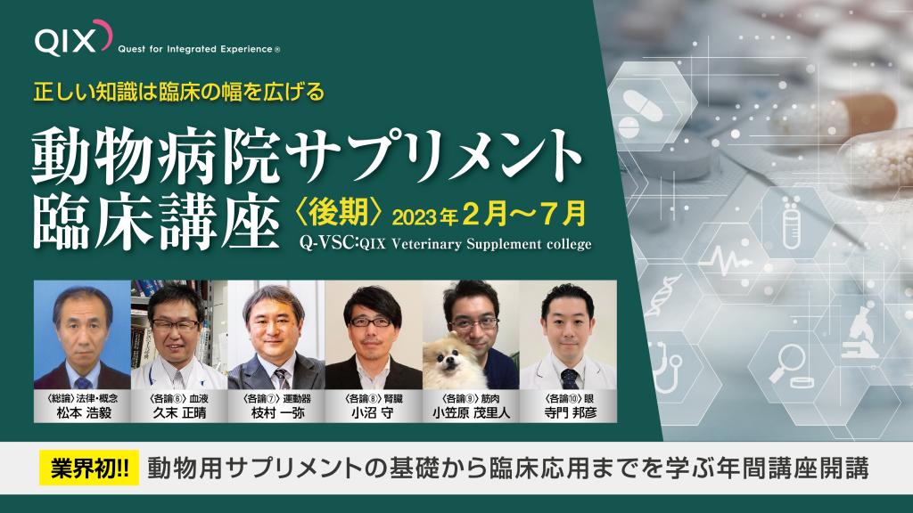 そこでQIXでは、動物用サプリメントの可能性や実際の事例などに関して、多くの獣医師、動物ケアスタッフの方々に知っていただきたいという想いから、本講座を企画いたしました。