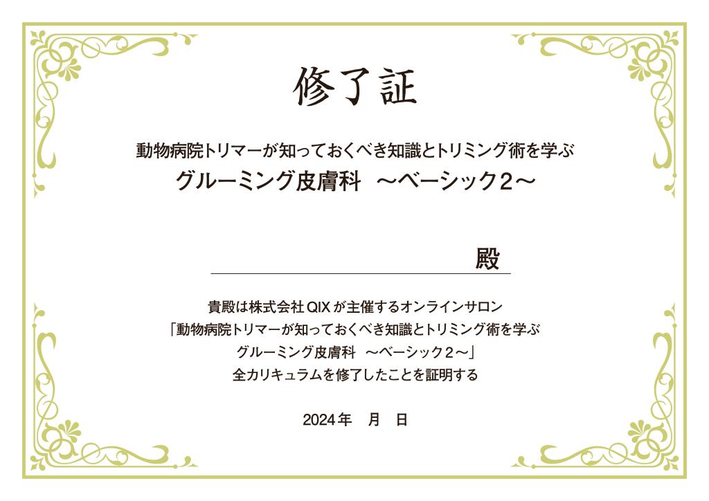本コース(全10回)のすべてのカリキュラムを修了された方に個人名で修了証を発行します。