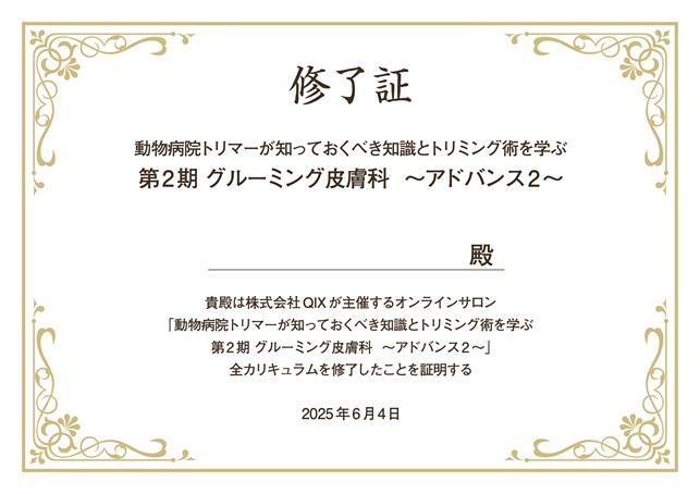 本コース(全10回)のすべてのカリキュラムを修了された方に個人名で修了証を発行します。