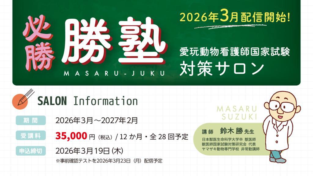第5回愛玩動物看護師国家試験までの1年間を有意義に、そして効率的に学習を進めたい方へおすすめのサロンです。